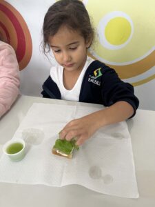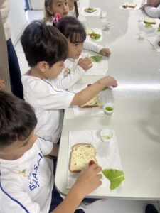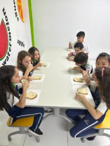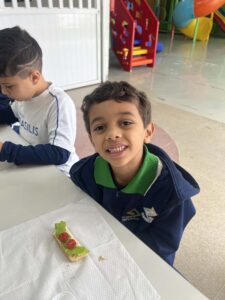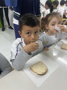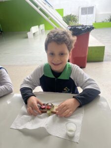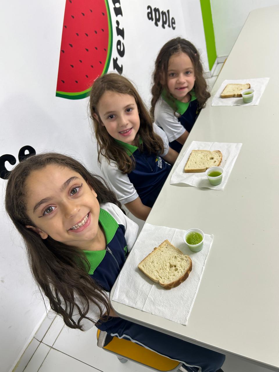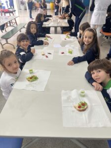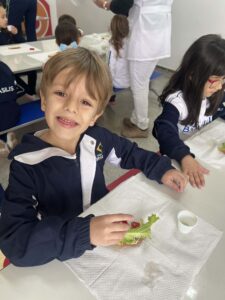 Eles colheram alface, cebolinha e couve manteiga, e o aprendizado não parou por aí… Em um momento de muita alegria e descontração, os alunos ainda saborearam um lanchinho saudável, preparado com o que eles mesmos colheram, com patê de cebolinha, tomate e alface fresquinhos e um suco natural de couve com maçã.