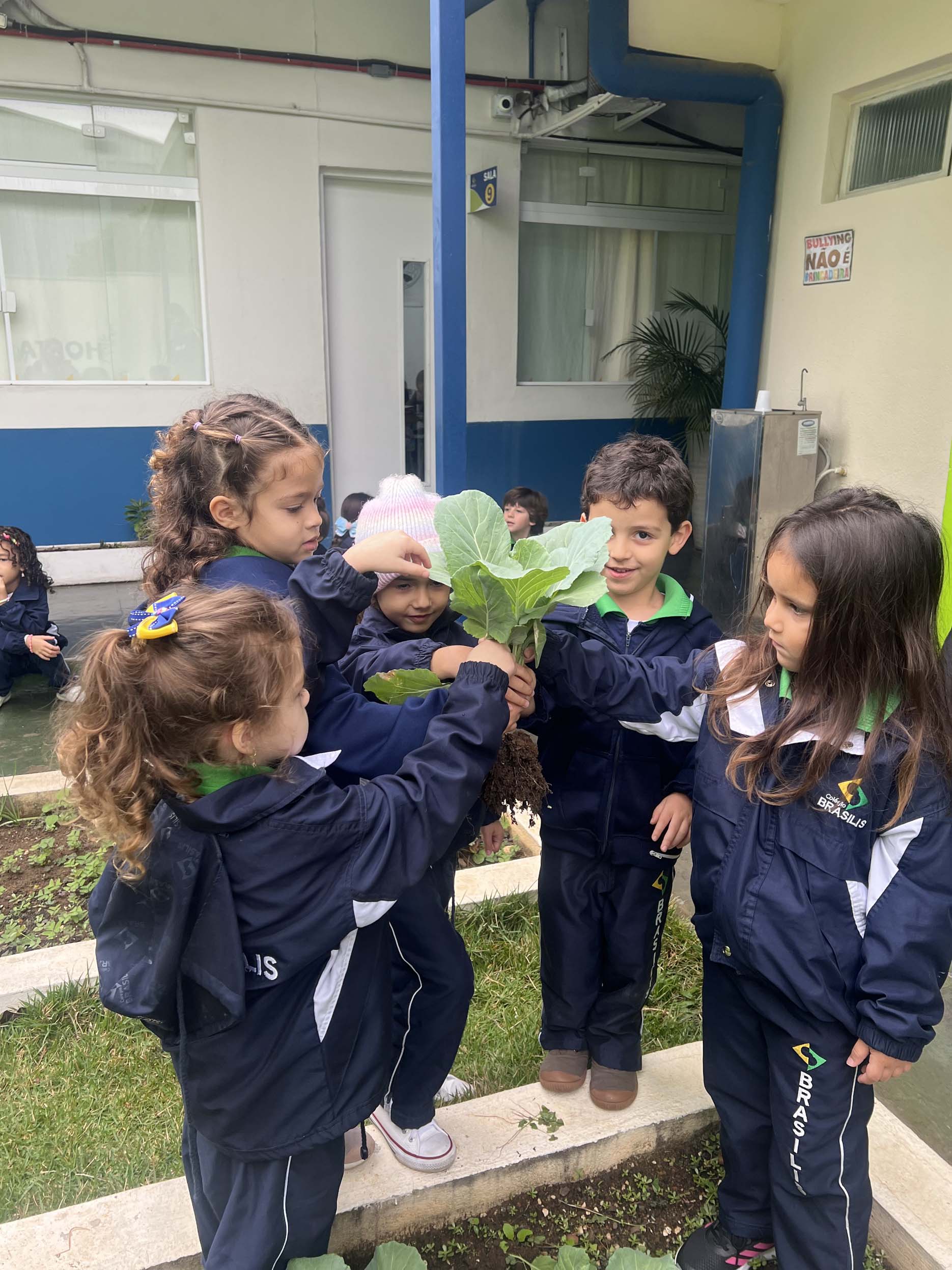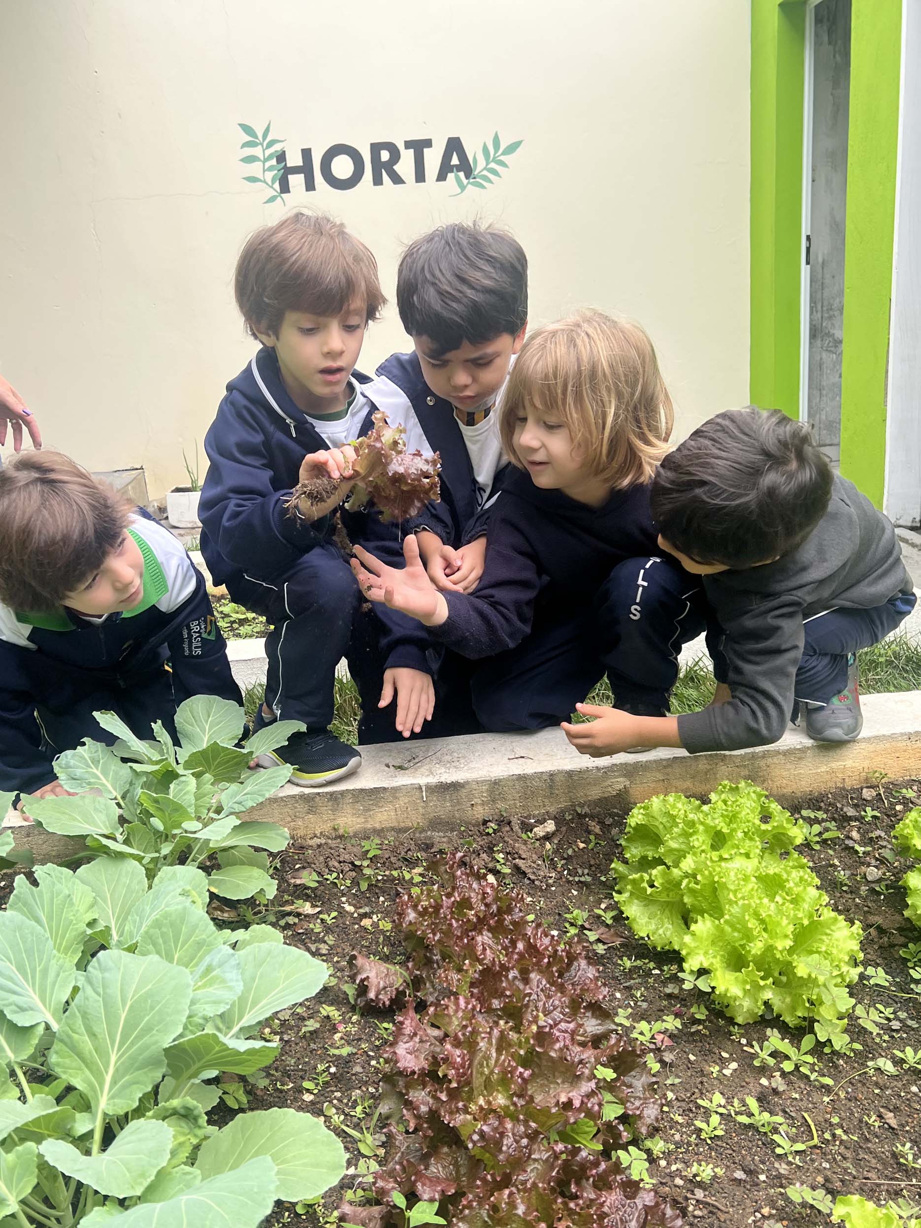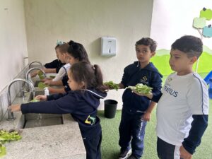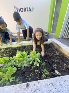 Na Unidade I, nossos alunos da Educação Infantil viveram um momento para lá de especial: a colheita da horta escolar!