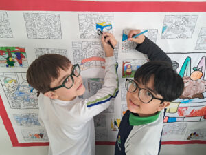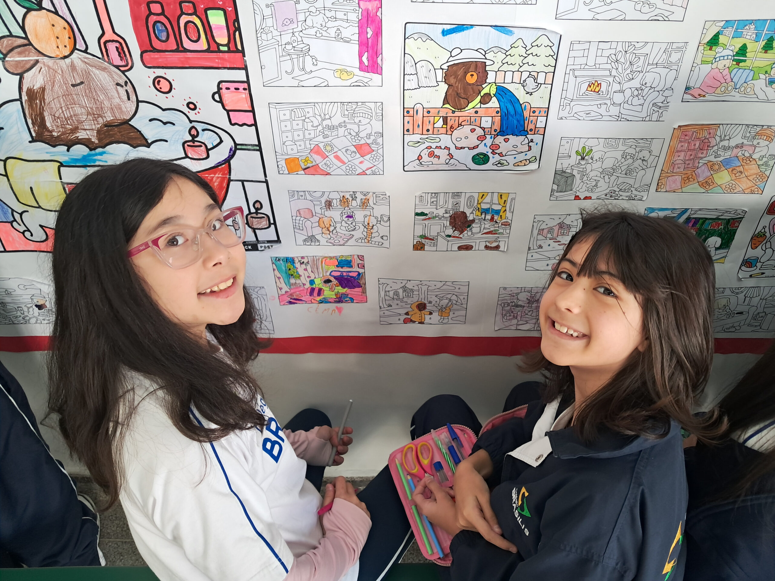 Cada desenho ganhou vida pelas mãos dos alunos, que escolheram cores, criaram combinações e se envolveram com entusiasmo em cada detalhe.